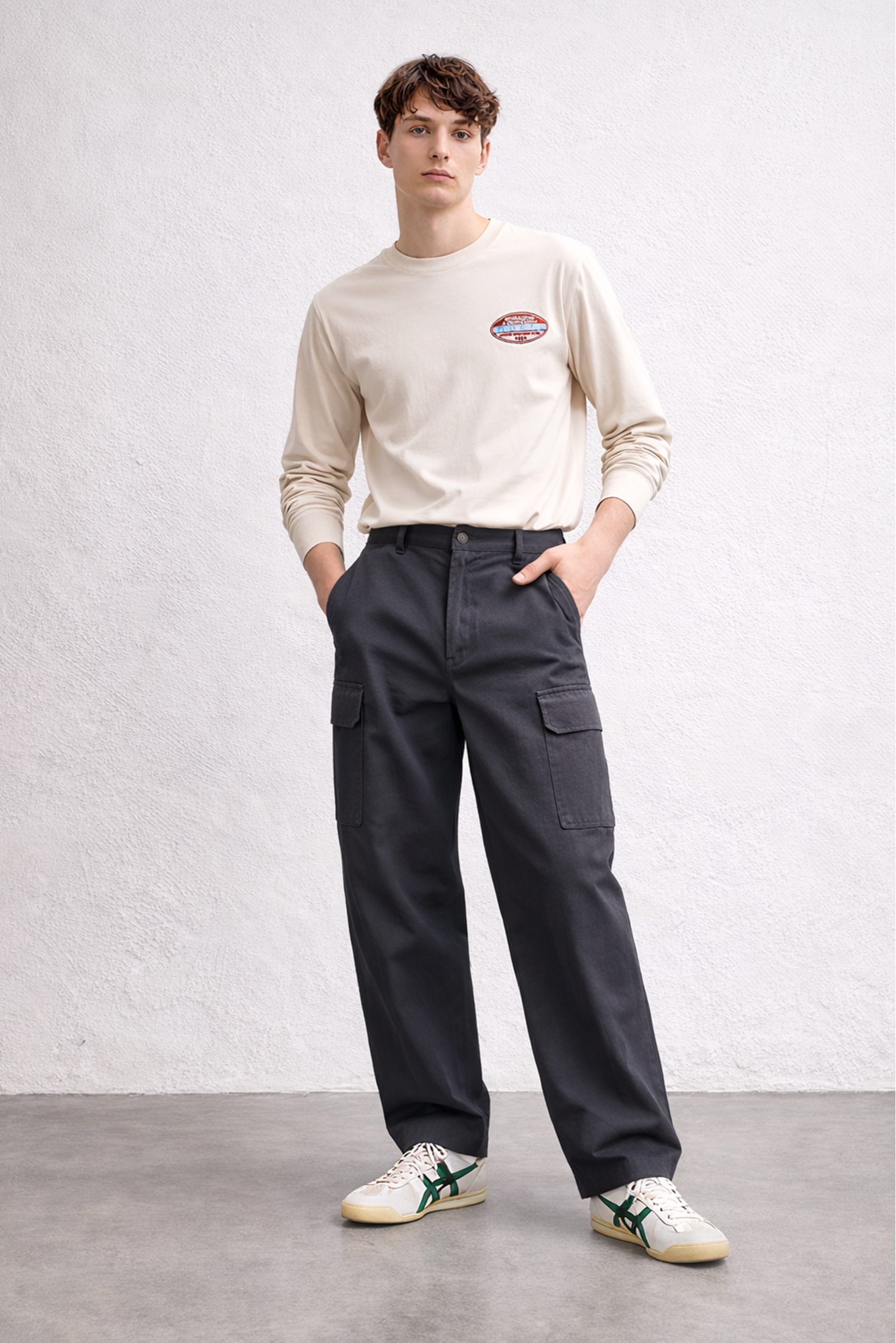 Las tallas se determinan en función de las medidas reales de cada prenda, sin considerar la indicación de la etiqueta. Recomendamos encarecidamente comparar estas dimensiones con alguna prenda con el fin de asegurarte de que el ajuste sea el adecuado.